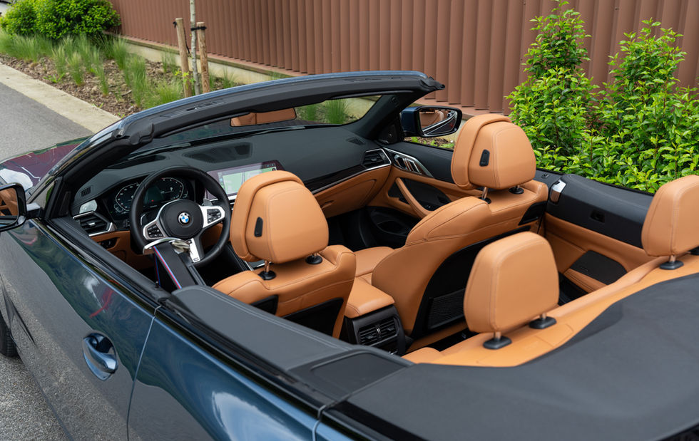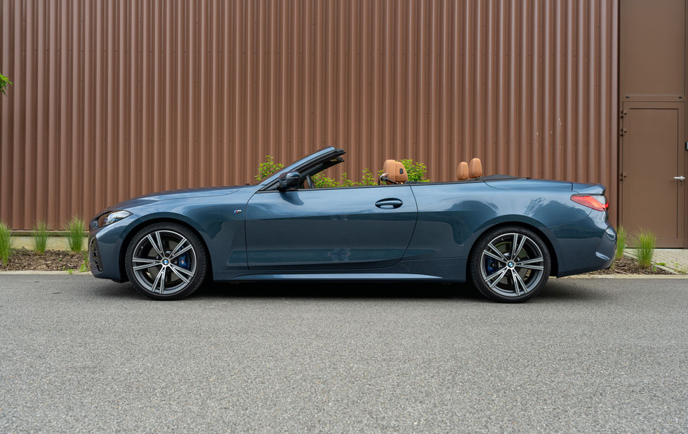 Wat is de vierwielige definitie van pret? Een cabrio met achterwielaandrijving. Moet dat dan per se een onpraktische tweezitter zijn? Zeker niet! Daarmee is deze BMW 430i M-Sport dé uitvlucht van je leven. Aftrappen doen we met de kleur; Arctic Race Blue Metallic, Een kleur die de elegante 4-serie nog eleganter maakt en uitstekend combineert met het zwarte stoffen dak, 19” bi-color M-sportvelgen, Individual shadow line sierlijsten en de lederen sportzetels in Cognac kleur. Verder heeft deze BMW een optielijst om U tegen te zeggen. Zo geniet je o.a. van het Harman Kardon geluidssysteem, Laser lights, head-up display, nek -en stuurverwarming, adaptief instelbare M sportvering en nog zoveel meer.