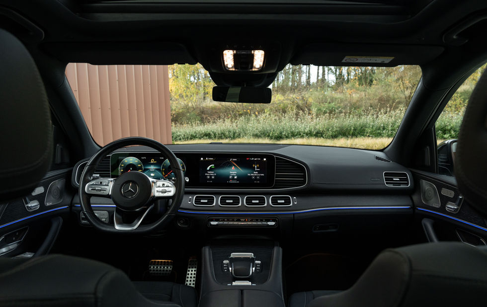 Het interieur straalt pure klasse uit met zwart leder/microvezel, een zwarte dakhemel en elegante afwerking in opgeruwd eikenhout. Elke rit voelt luxueus en verfijnd, ondersteund door opties zoals: AMG Sportpakket, Panoramisch open dak, Burmester Surround Sound, 360°-camera, Adaptieve cruise control (Distronic), Adaptieve luchtvering, Elektrische trekhaak en nog veel meer.