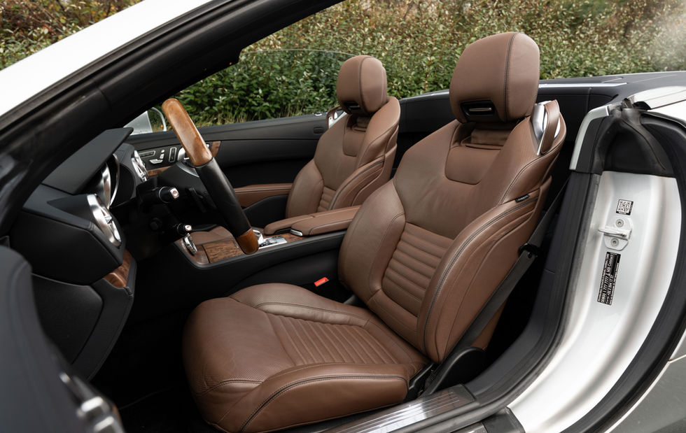Dit is nog een SL uit de periode dat Mercedes gebouwd werd met vakmanschap, zware materialen, hoogwaardig leder en echte houtinleg — geen plastiekerige moderne bezuinigingen. Een auto met ziel en karakter. De boterzachte V6 met prachtig genuanceerd motorgeluid maakt rijden opnieuw iets zintuiglijks. Dit is geen gadget op wielen — dit is een Benz zoals vroeger.