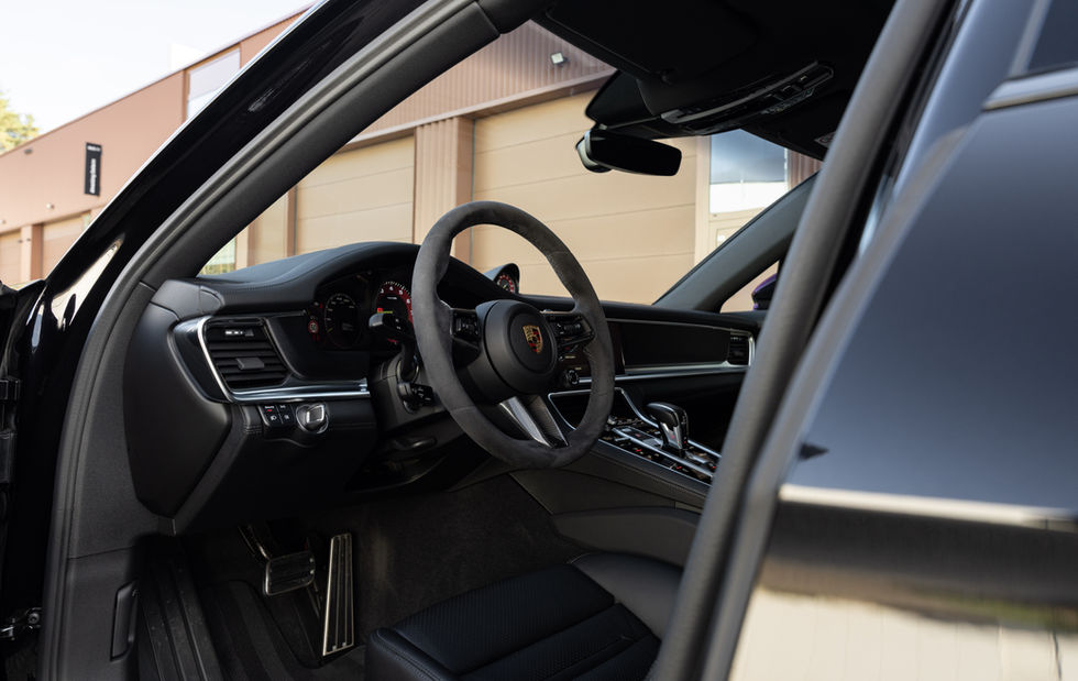 Het GT-sportstuur in Alcantara met carbon stuurwielpaneel sluit mooi aan bij deze exclusieve configuratie en versterkt het sportieve karakter van de wagen. In combinatie met het SportDesign Package met sportievere bumpers krijgt de Panamera bovendien een duidelijk dynamischere uitstraling dan een standaard uitvoering.
